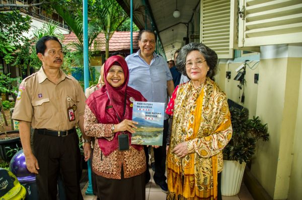 Keluarga Wakil Presiden RI Moh Hatta hadiri peresmian renovasi perpustakaan SMAN 1 Jakarta yang dinamai Perpustakaan Bung Hatta. Transindonesia.co /Mirza Ichwanuddin]