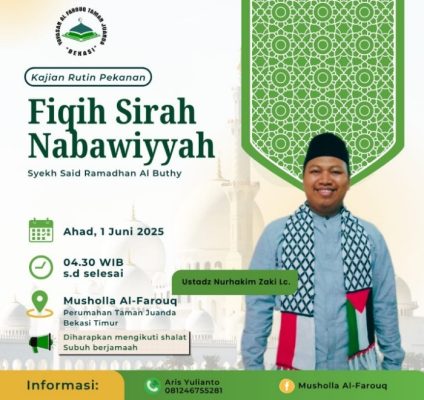TRANSINDONESIA.co Kajian Rutin Pekanan “Fiqih Sirah Nabawiyah” karya Syekh Said Ramadan Al Buty oleh Ustadz Nurhakim Zaki Lc, di Mushola Al Farouq Perumahan Taman Juanda, Bekasi Timur. Ahad (1/6/2025).