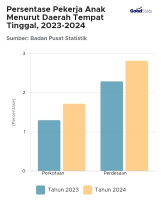 Tak hanya catatan ILO, Badan Pusat Statistik (BPS), pada tahun 2024 persentase pekerja anak mengalami kenaikan sebesar 0,45% dari tahun 2023 yaitu dari 1,72% menjadi 2,17%.